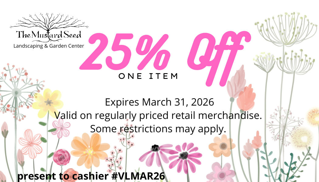 Present this coupon to one of our associates and they will apply a 25% discount to one regularly priced item. Of course there are some exclusions such as consignment items, labor and already discounted items. So pick up a bit of color to brighten your day or someone special in your life.